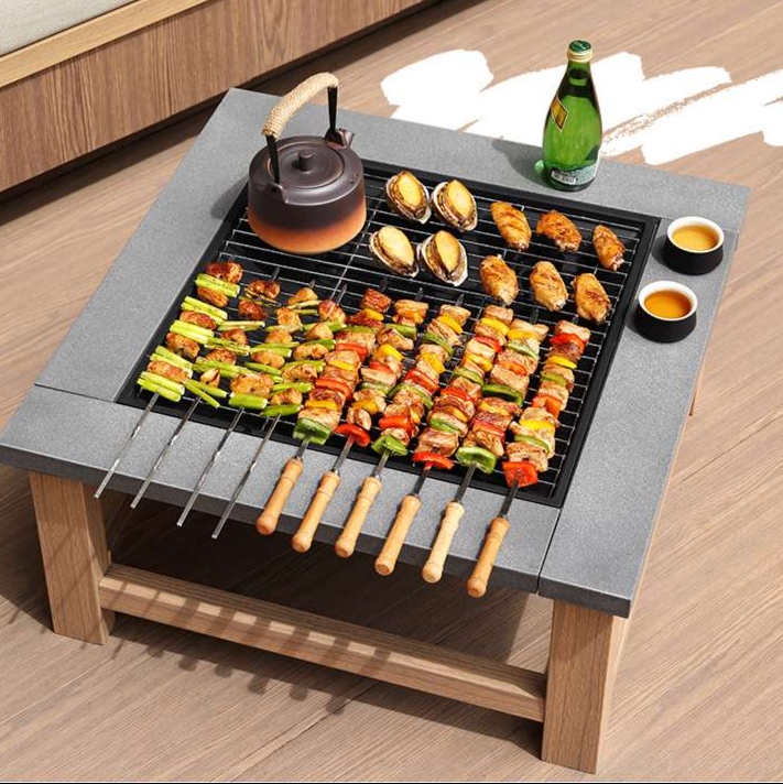 テーブル中央に焚き火や炭を置けるスペースがあり、調理がしやすい設計になっています。