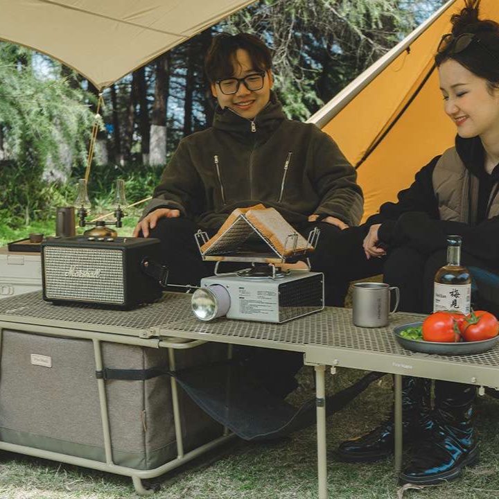 このテーブル一台で、キャンプ場に自宅のリビングとキッチンの快適さを持ち込むことができます。