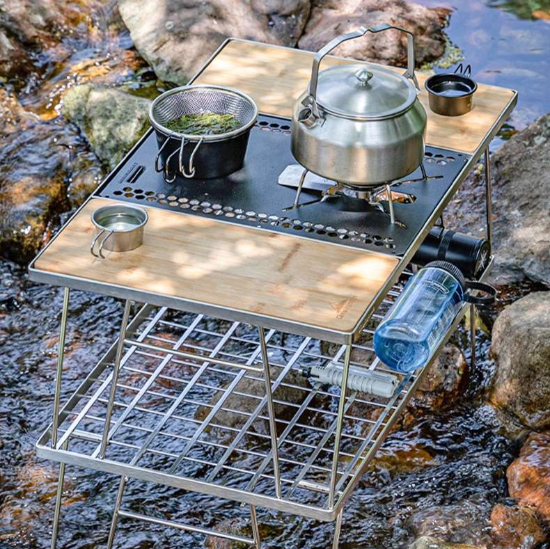 持ち運びが楽な軽量木製キャンプ用ウッドテーブル