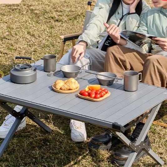 ピクニックに最適な大型アルミ製折りたたみテーブル