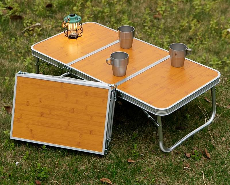 軽量でコンパクトに折りたためるアウトドアテーブル。キャンプやバーベキューに最適な木目調の天板と頑丈な金属フレームが特徴で、高い安定性を実現。組み立ては簡単で、取っ手付きなので持ち運びも楽々。収納時はコンパクトになり、スペースを取らない実用性も魅力。自然の中での食事やリラックスタイムを快適に演出する、アウトドア愛好者にぴったりのアイテムです。