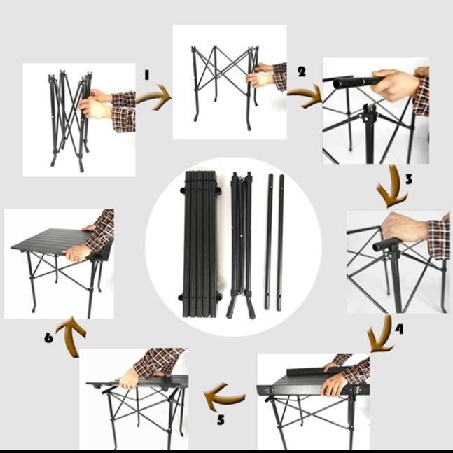アルミ製のすのこ天板は軽量で持ち運びやすく、折りたたみ式の脚部により収納時もコンパクトになります。