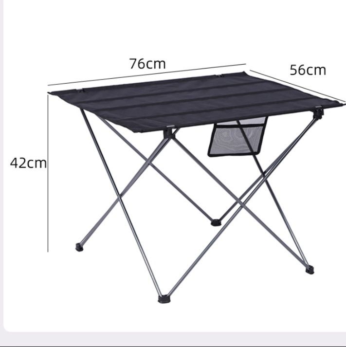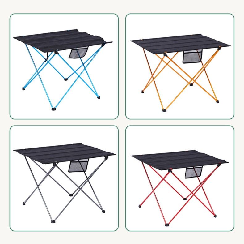軽量アルミフレームと布製天板を採用し、持ち運びやすさと安定性を両立しました。