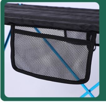 テーブル下部には小物を入れられる便利な網目収納ポケット付き。