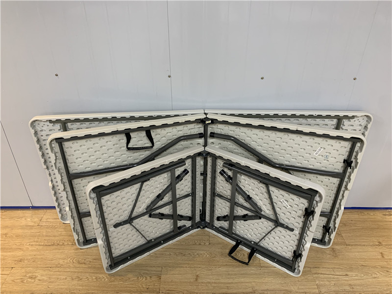 広々とした天板は調理スペースや食事スペースとして十分な作業面を確保でき、二つ折りに収納できるため車載も楽々です。