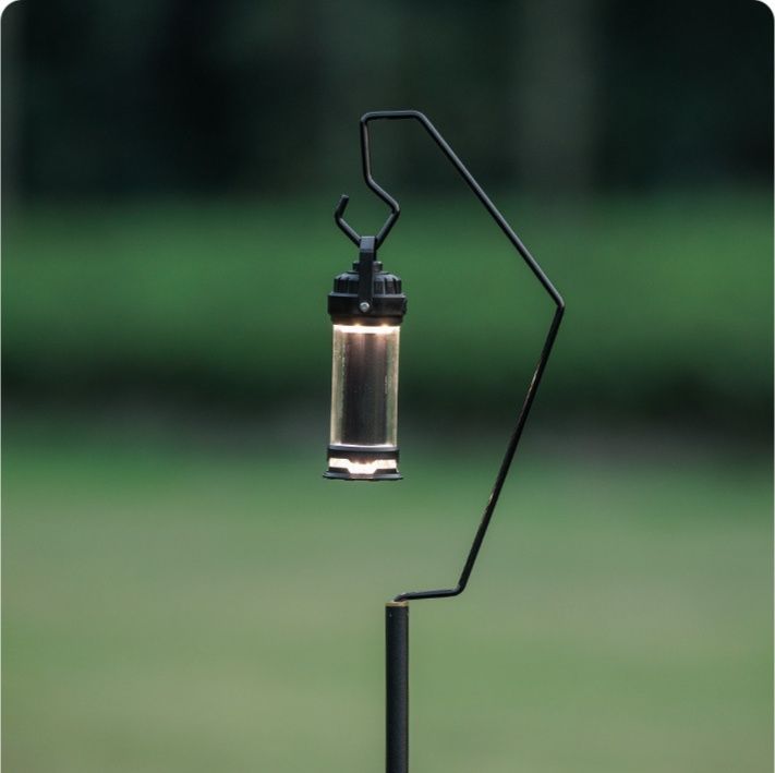 天板中央から伸びる吊り下げフックには灯具や水筒を掛けることができ、機能性に優れています。