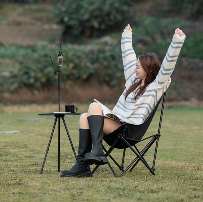 軽量で持ち運びやすく、椅子の横に設置すれば快適な屋外空間を演出します。