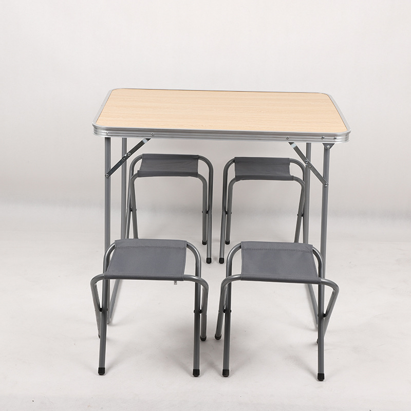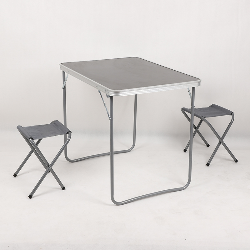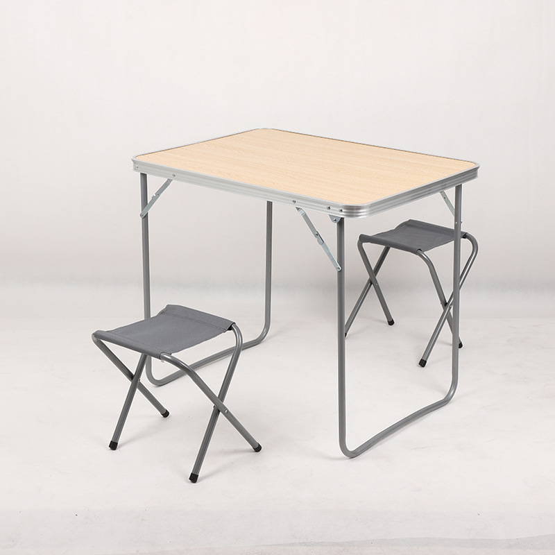 持ち運びに便利なコンパクト設計のアウトドアテーブルと椅子二脚がセットになった商品です。