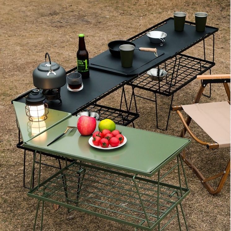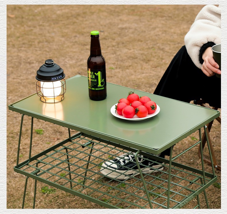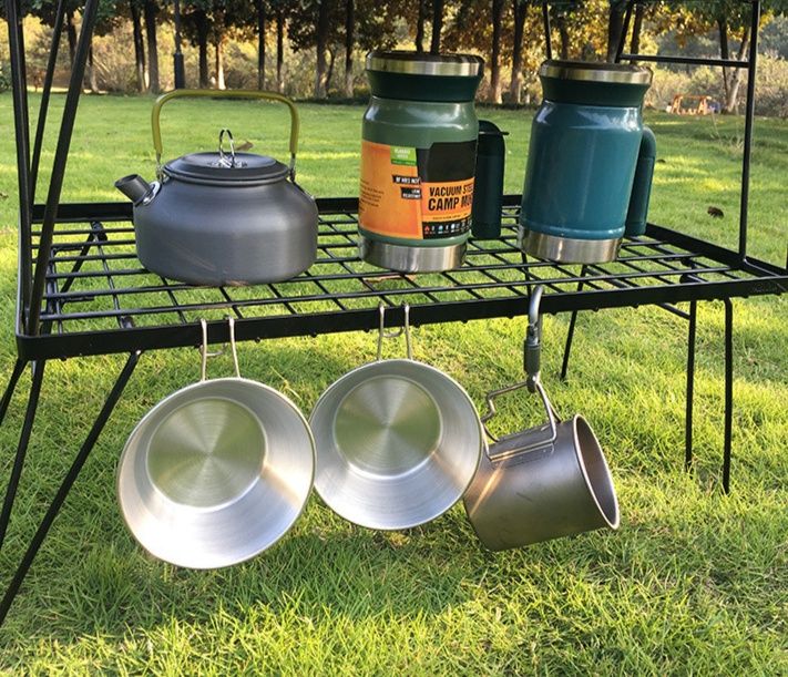 やかんや保温容器を直接置けるメッシュ天板を採用し野外活動での実用性を追求しました。