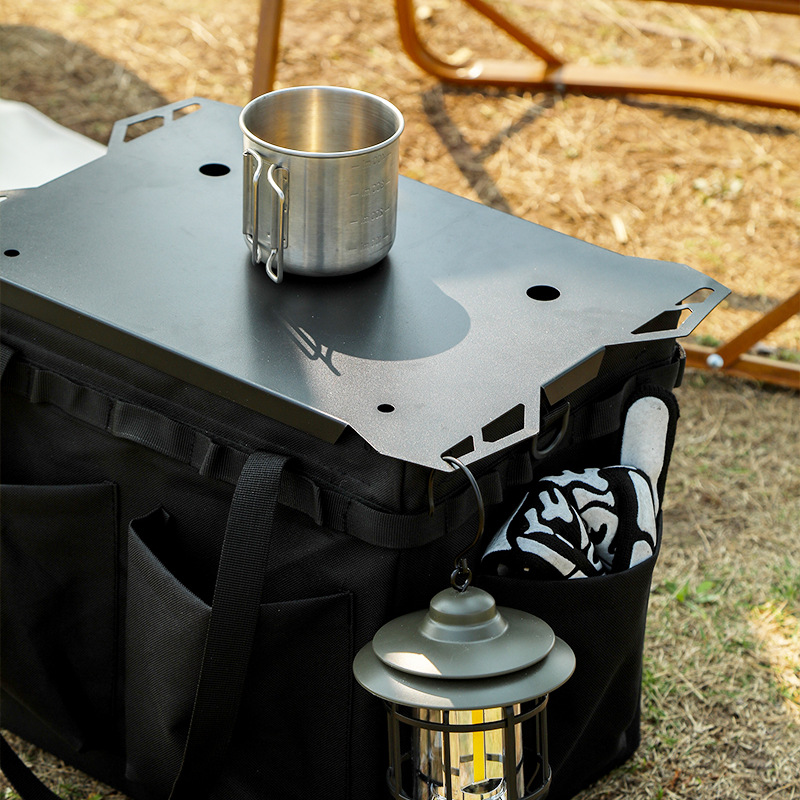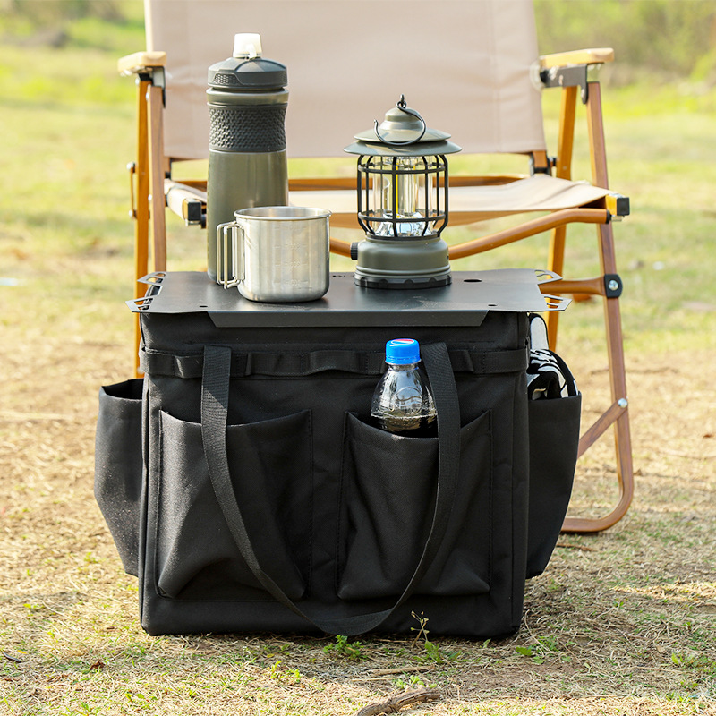 ソロキャンプに最適な収納袋とテーブルが一体化した機能的なアウトドアテーブルです。