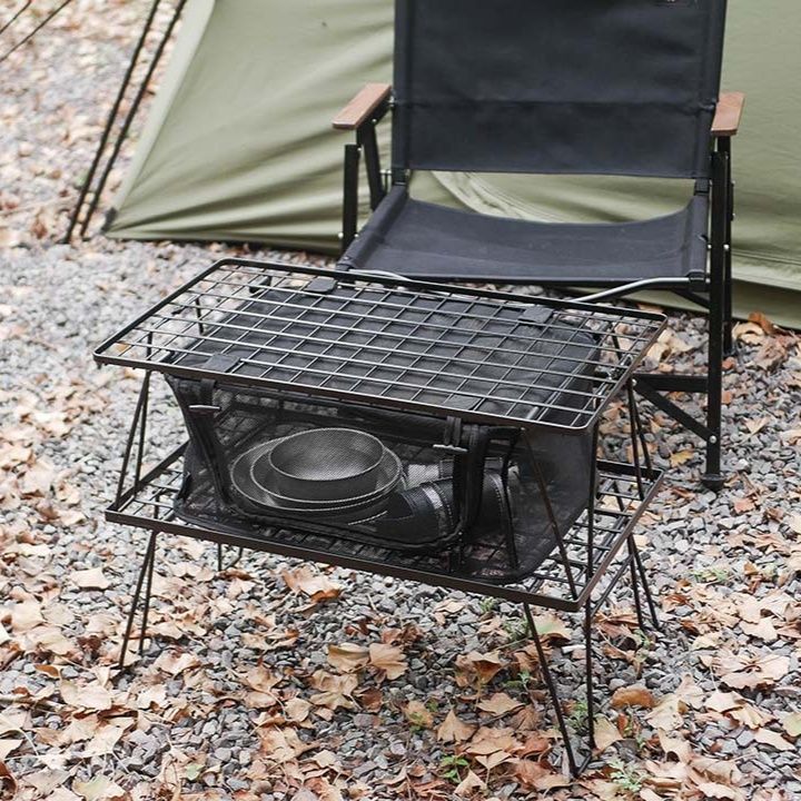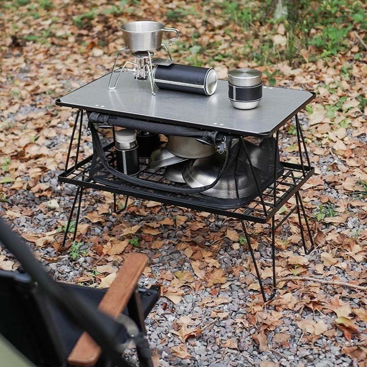ソロキャンプに最適な二段構造のアウトドアテーブルです。