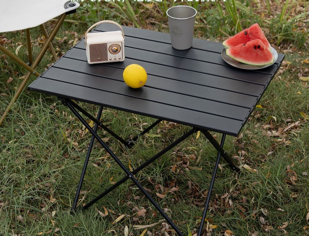 天板はアルミ製のロール式で軽量ながら安定感があり、折りたたみ脚で収納も簡単です。