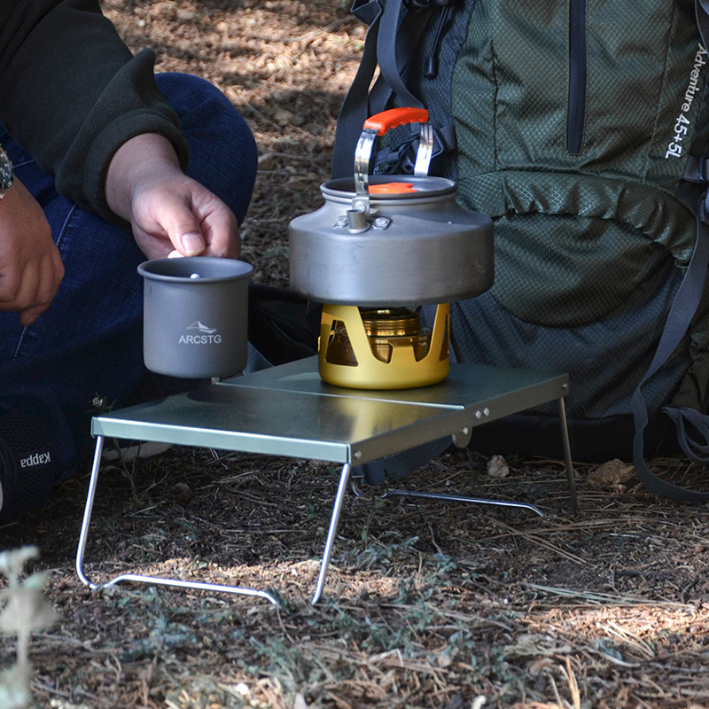 丈夫な金属製天板は調理器具やマグカップをしっかり支え、折りたたみ式の脚部で携帯性も抜群です。