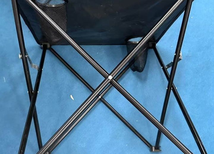 天板には飲み物ホルダー付きで実用性抜群、安定した金属製の脚部が荷物をしっかり支えます。