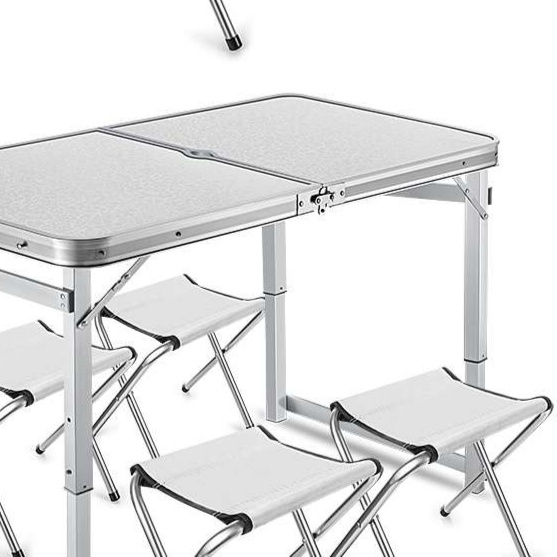 軽量でコンパクトな折りたたみアウトドアテーブルは、キャンプやバーベキューに最適なアイテムです。持ち運びやすい設計により、収納時は薄く、スペースを取らずに便利です。スツール4脚が付属しているため、家族や友人と共に快適なアウトドア食事を楽しむことができます。耐久性に優れた素材を使用しており、様々な野外活動にも対応可能です。