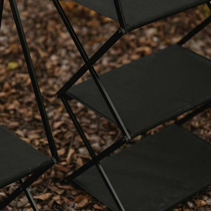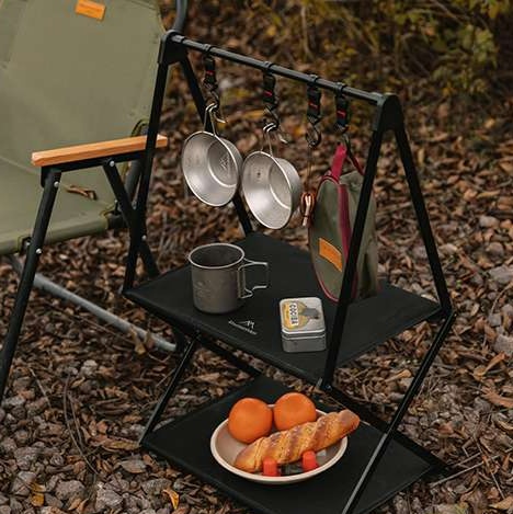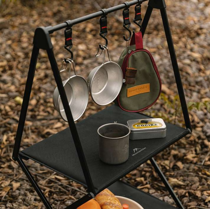 調理器具の収納と食材置き場を分けられる二段構造で、アウトドア調理を快適にサポート