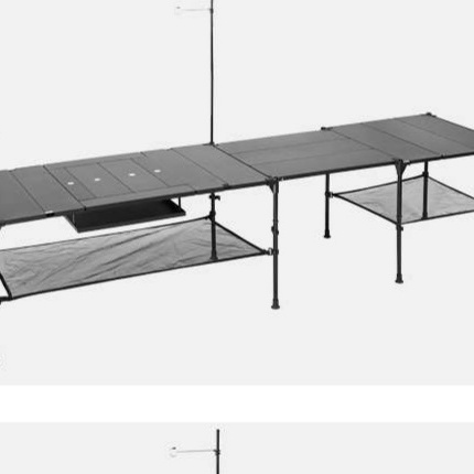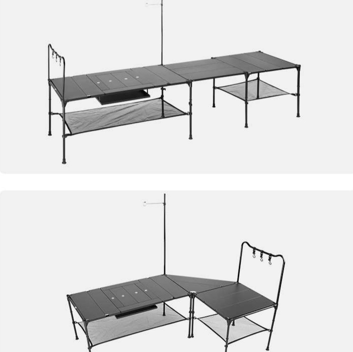 ランタンフック付きポールやガスコンロスペースなど、アウトドア調理に必要な機能が凝縮