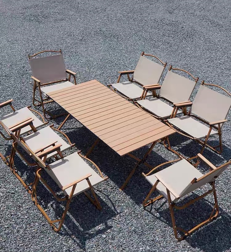 天然木材を使用した温かみのある表情で、アウトドアシーンに調和する上質な雰囲気