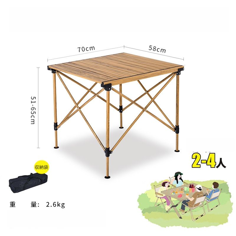 木目が美しい天然木の天板を採用したアウトドアテーブル。