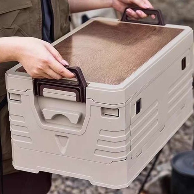 折りたたみ式で持ち運びやすく、ボトルやランタンなどの収納に特化した実用的な設計