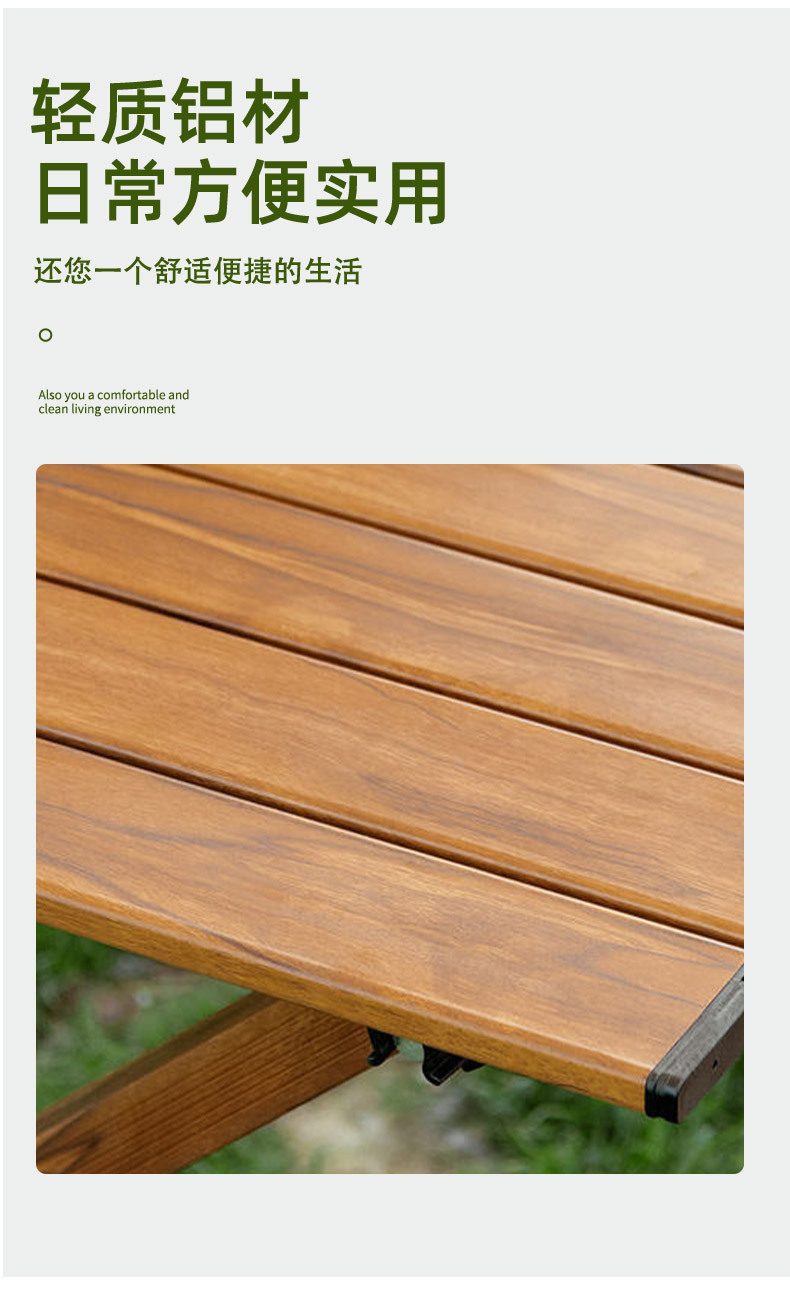 自然な木目が美しい天然木を使用したアウトドアテーブルです。